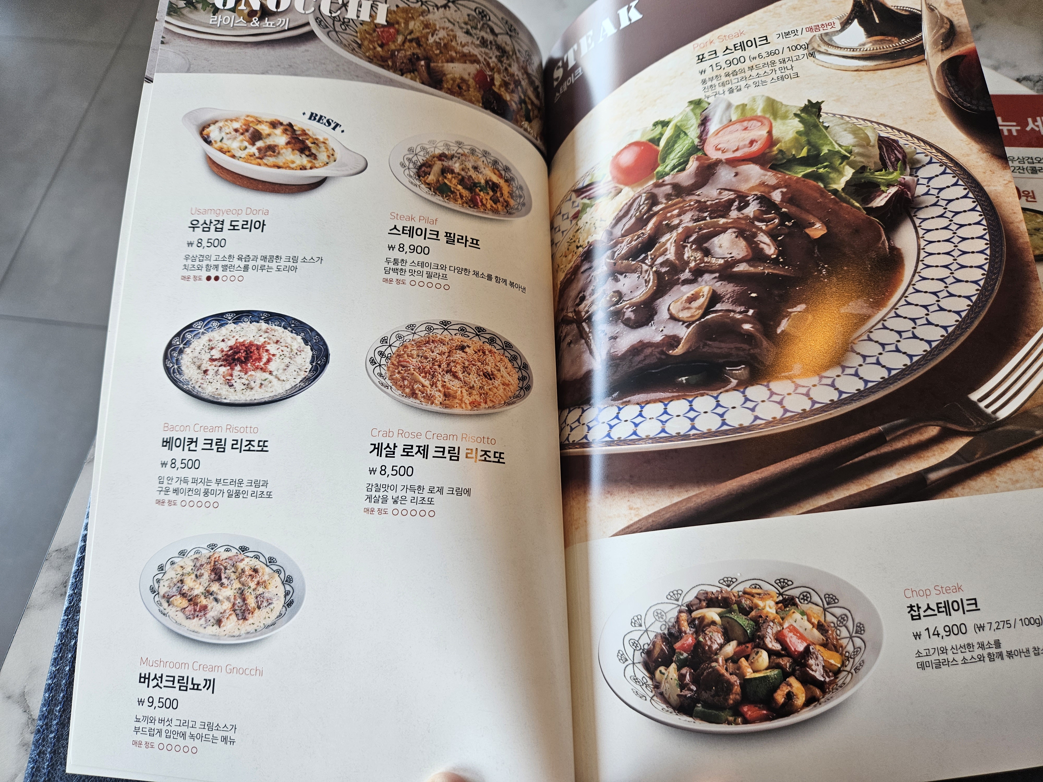 그중에서 저는 가장 맛있던 메뉴는 스테이크 크림 파스타 입니다. 제가 고기,면, 크림종류를 좋아하는데요