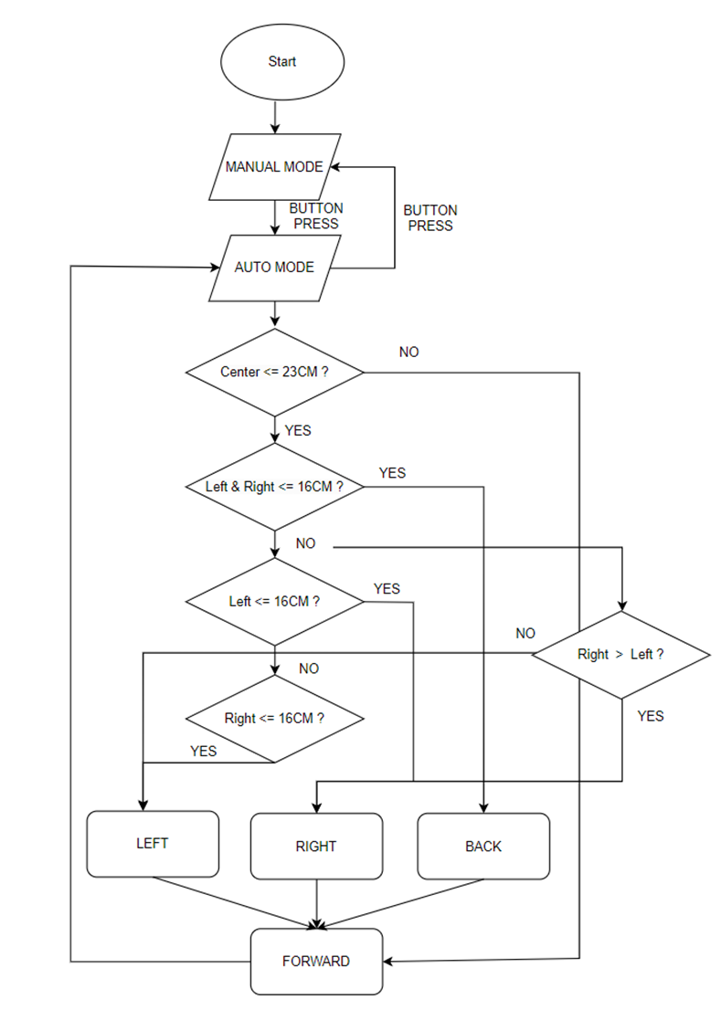 설계 알고리즘은 위의 그림과 같습니다. 파워가 보드에 제공되면 Mannual mode가 실행되고 버튼을 누르면 AUTO MODE로 전환됩니다. 이를 RTOS모드를 통해 사용됩니다.