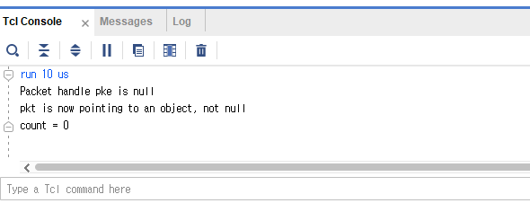 예상되는 시나리오는 pkt가 처음 생성자를 만들지 않았기 때문에 packet hanle pke is null 이라는것이 출력되고 그다음 생성자를 만들었기때문에 pkt ==null이 아니라 pkt is now pointing to an object, not null이 나오고 count가 됩니다.